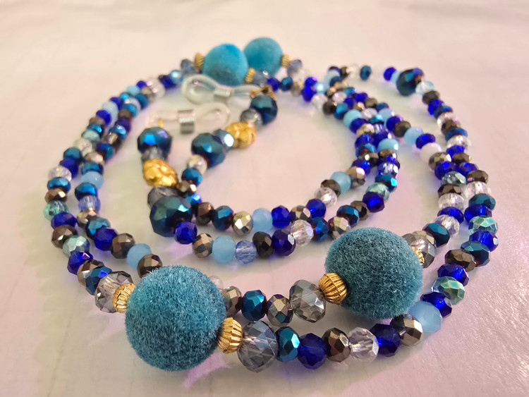 این بندعینک از مهره های کریستال و گوی مخملی ساخته شده که بندعینک شما را خاص میکند.