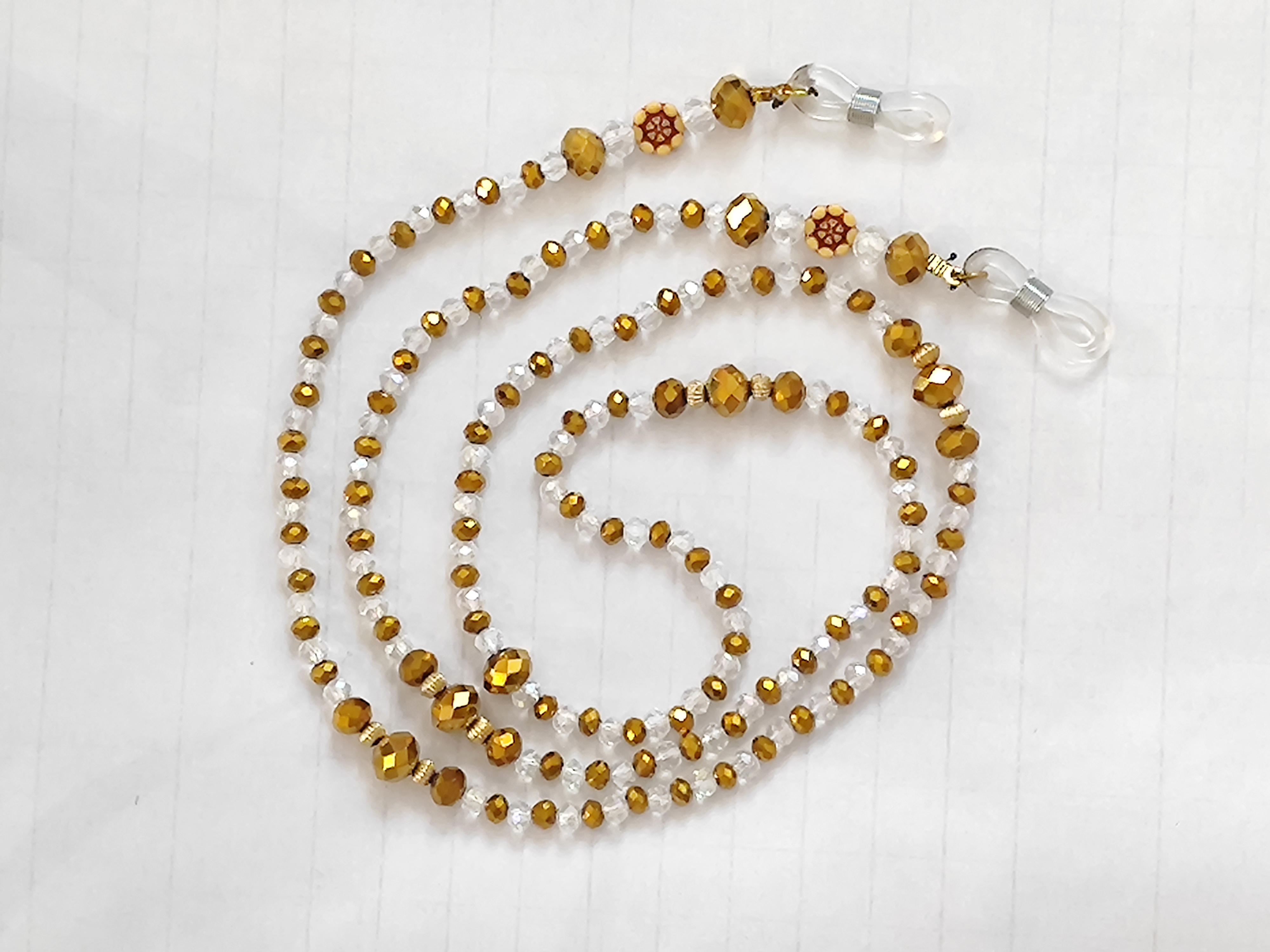 بندعینک کریستالی طلایی بسیار سبک و شیک درخشندگی خاصی به استایل شما میبخشد قابل سفارش به اندازه دلخواه شما ارسال به سراسر کشور
