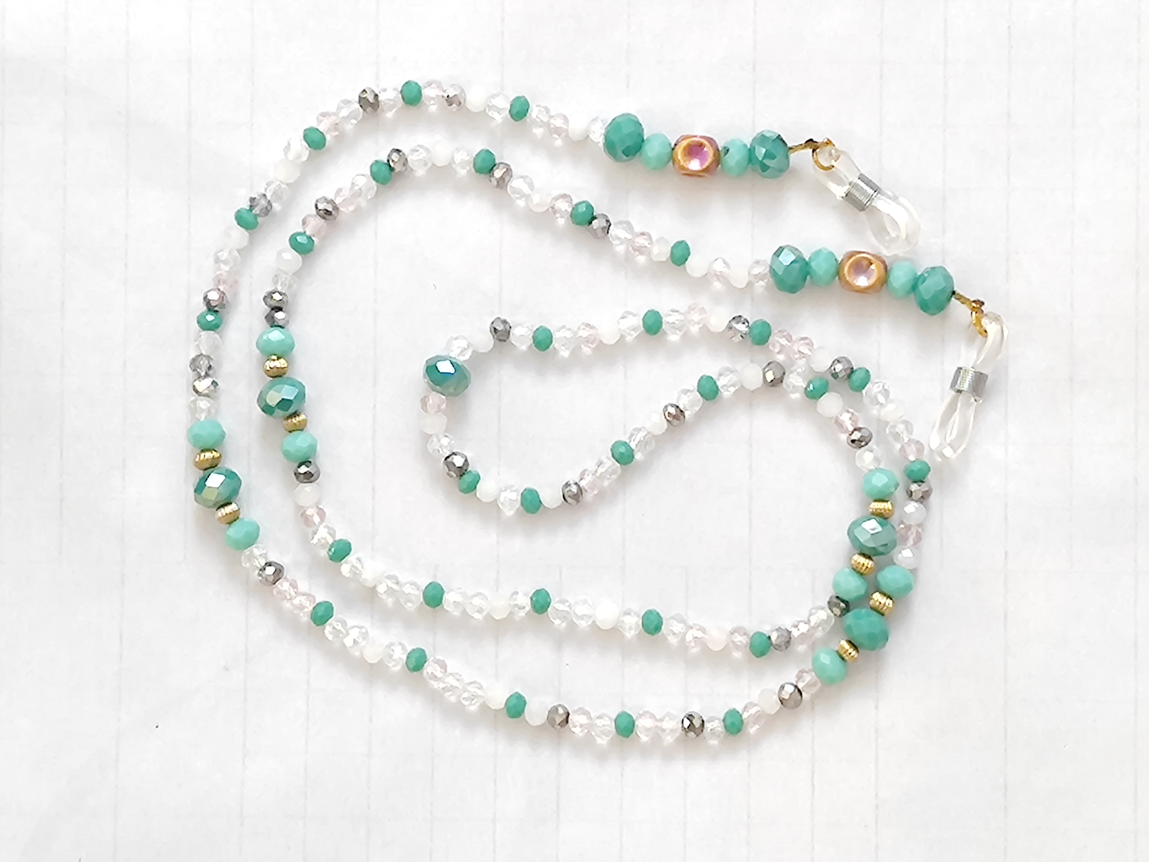این بندعینک از مهره های کریستالی درخشان و جذاب ساخته شده و دانه های رنگی بند، آن را منحصر به فرد کرده است.
