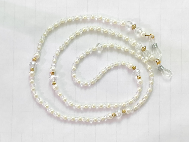 بندعینک کریستالی مرواریدی که از مهرهای کریستال و مروارید سنگی ساخته شده.